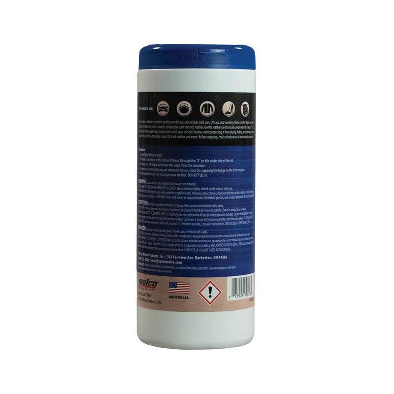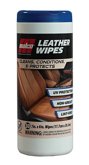 Серветки-кондиціонери для шкіри Malco® – це засоби для безпечного та ефективного чищення, зволоження та захисту шкіряних автомобільних сидінь. М'яка, нежирна формула для догляду за шкірою у поєднанні з великою, міцною серветкою розміром 17 x 20 см, що не залишає ворсу, допомагає відновити та покращити стан шкіряного салону, захищаючи його від висихання, вицвітання та передчасного зносу.